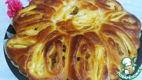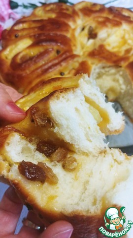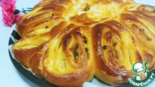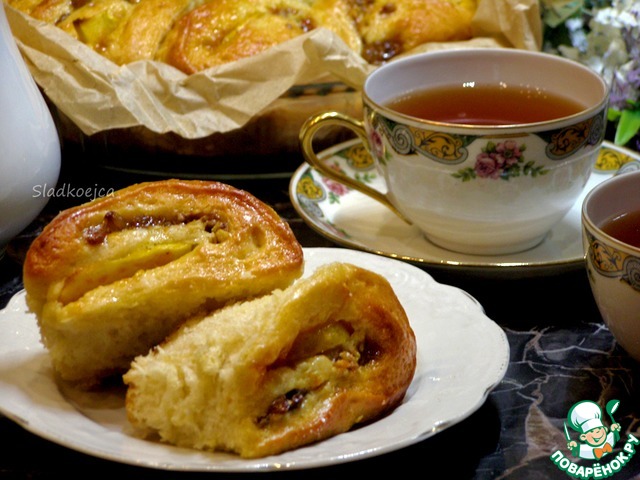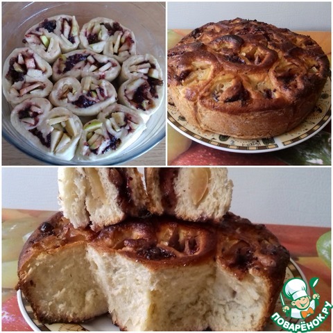 Рецепт «Бриошь с яблоками, изюмом, шоколадом»: