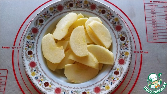Подготавливаем яблоки, нарезая их тонкими слайсами и сбрызнув лимонным соком.
