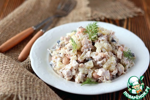 Соединить все составляющие салата, добавить рубленные грецкие орехи (2 ст. ложки).