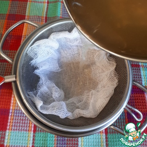 Рыбу и овощи достать из бульона, процедить через марлю.