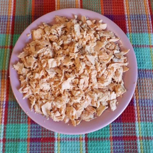 Рыбу разобрать на кусочки, удалить косточки, получилось 200 гр.