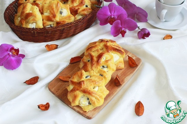 Рецепт «Сдобные творожные булочки "Цветочки"»: