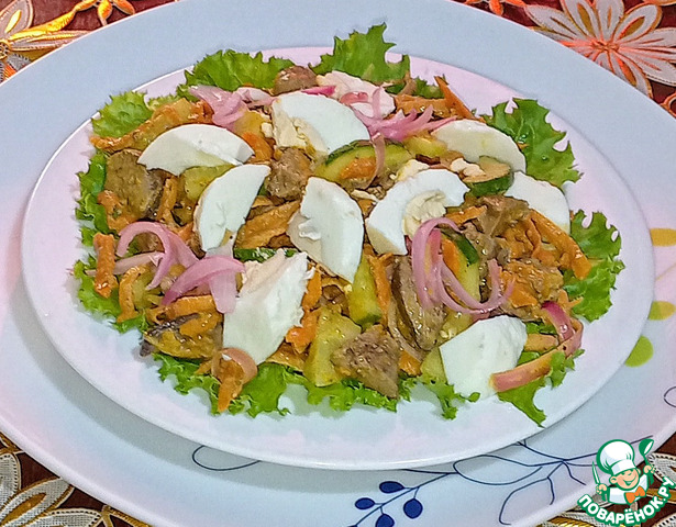 Рецепт «Салат из куриной печени и маринованного лука»: