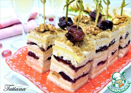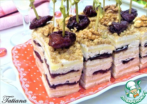 Рецепт «Канапе "Три сыра" с орехами, сливой»: