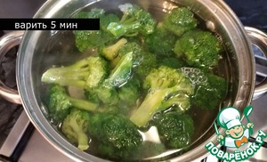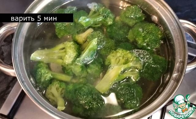 3. Варим брокколи в кипящей подсоленой воде ровно 5 минут и перекладываем в холодную воду, можно со льдом.