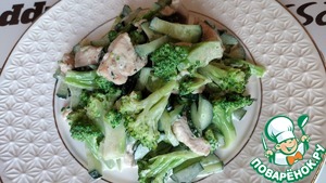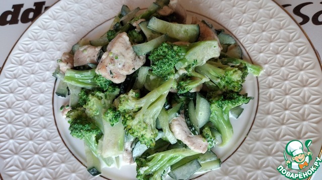Всем привет. Перепробовала много вариантов салата с брокколи, этот получился самый лучший. Всем гостям нравится, и самое приятное, что детки уплетают за обе щеки) Главное правильно сварить брокколи, чтоб они остались хрустящими, но не сырыми. И еще, вкус добавили Малосольные, молодые, хрустящие огурчики.