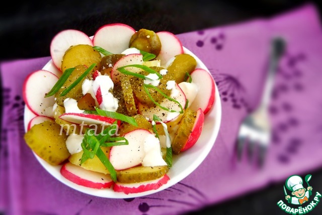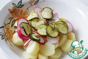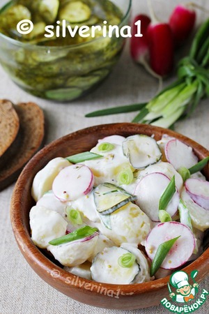 У меня здесь использованы огурчики, приготовленные по рецепту Бронте Аурель: https://www.povareno k.ru/recipes/show/15 1307/ (уберите пробелы в ссылке) -