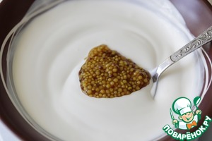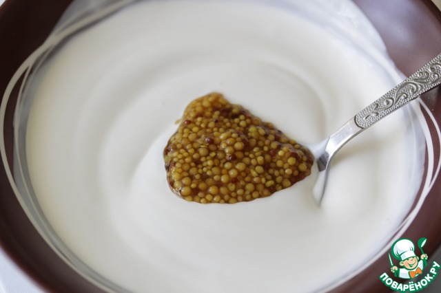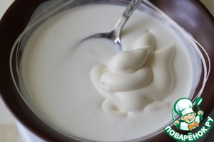 К йогурту добавить майонез, соль и свежемолотый перец. -