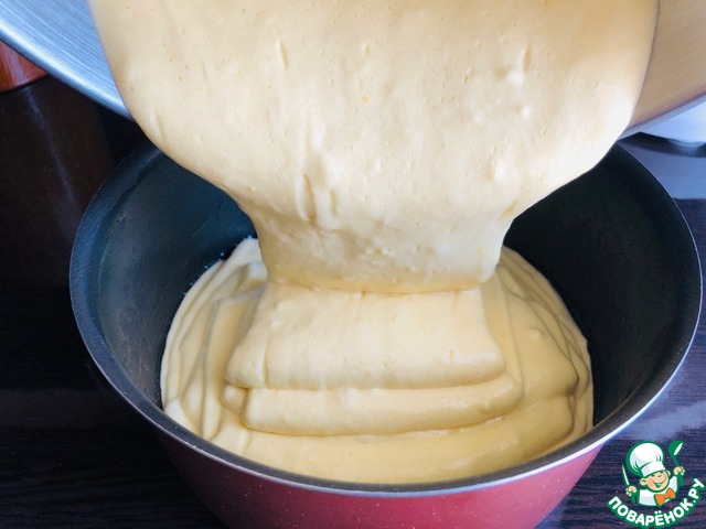 3. Тесто перекладываем в форму для выпекания ( диаметр 19 см.), смазанную маслом.