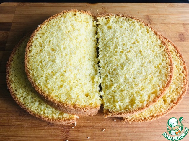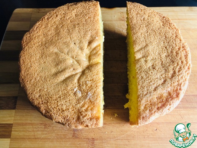 5. Остывший бисквит разрезаем. Одну часть бисквита оставляем чуть больше.