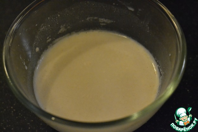 В 50гр. теплого молока распустить дрожжи, добавить 1ст. л. сахара и 1 ст. л. муки. Размешать, прикрыть и оставить подходить в теплом месте.
