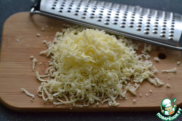 Через 35 минут фольгу снять. Посыпать блюдо тертым сыром и допекать еще 10 минут.