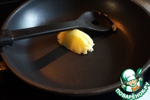 Фарш разминать в лепешки, в центр каждой уложить начинку.