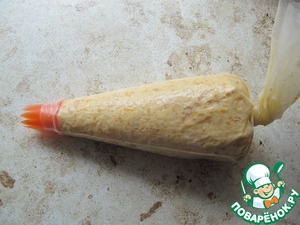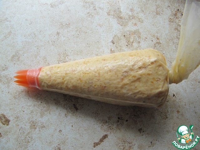 Наполнить кондитерский мешок или плотный пакет, отрезав край.