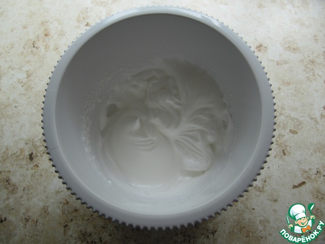 Белки отделить от желтков и взбить до мягких пиков с 1/3 частью сахара.
