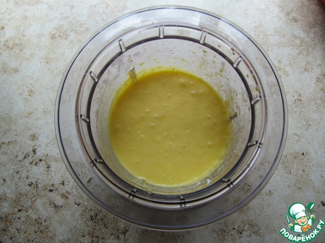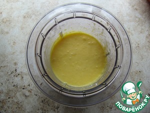 Желтки взбить с оставшимся сахаром до побеления, добавить сметану, теплое растопленное сливочное масло, ванильный сахар, перемешать миксером до однородности.