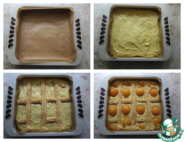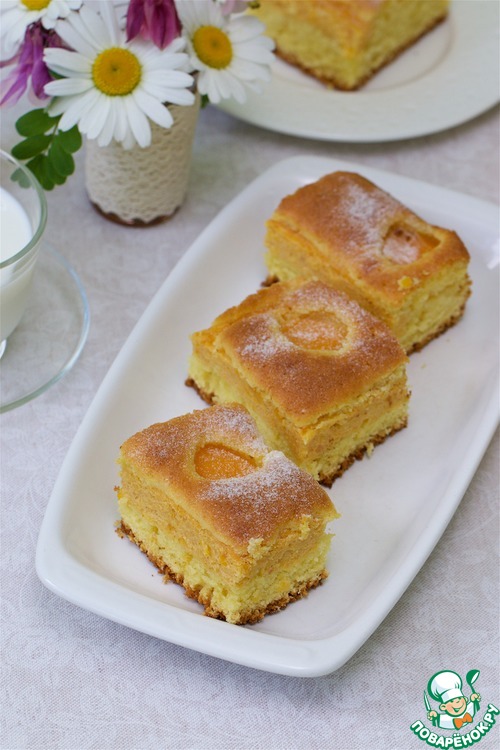 Рецепт «Пирог с абрикосами и творожной прослойкой»:
