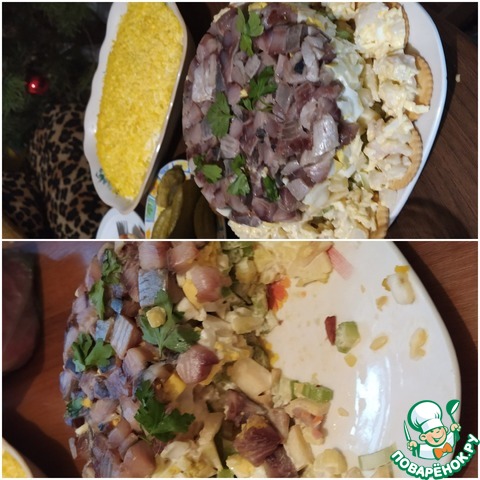 В слой сельди добавила ложку рафинированного масла(чтоб не заветрилась). Сверху посыпала укропом для цвета