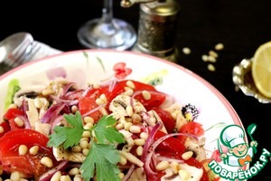 Посыпать салат кедровым орехами и подавать на стол.