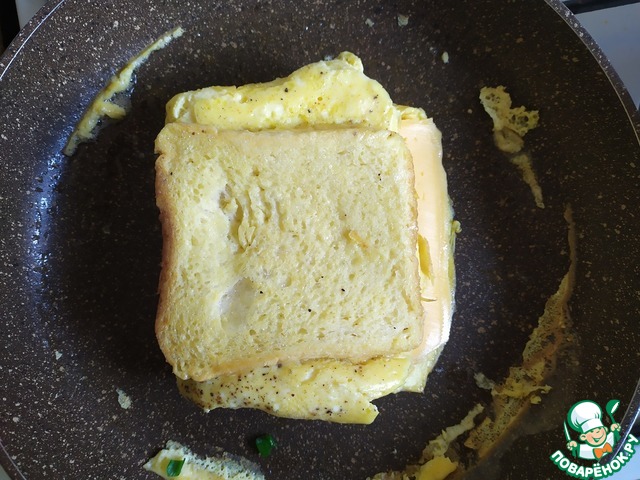 И сложить наш сэндвич. Затем немного обжарить с двух сторон.