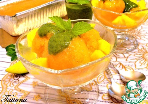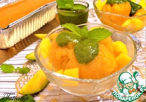 Ярко-солнечный сорбет из манго и нектаринов, с приятной кислинкой грейпфрута! Мятный соус, пикантно дополнит и украсит невероятно вкусный и освежающий десерт!