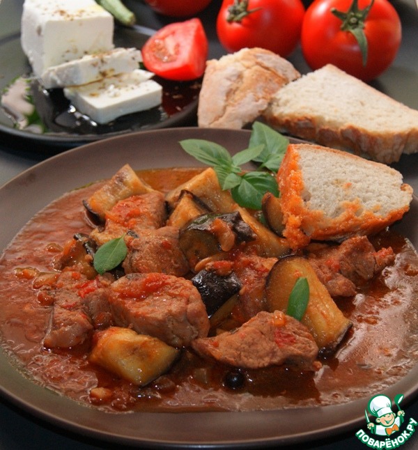 Очередной любимый рецепт греческой национальной кухни! Нежное, мягкое мясо и баклажаны в ароматном и вкусном красном соусе.