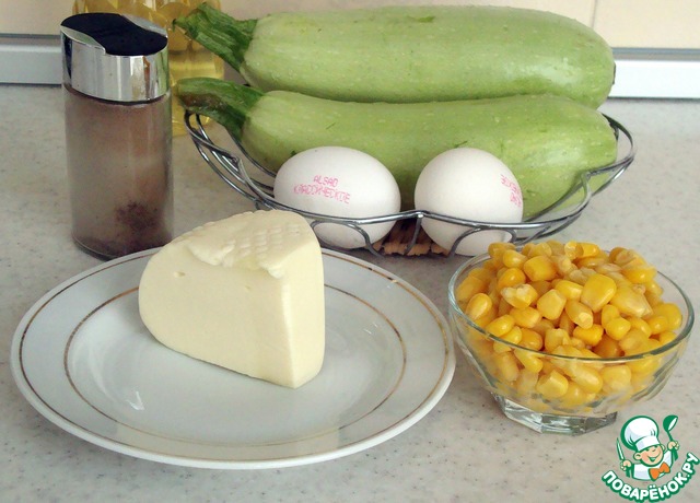 Ингредиенты для «Кабачковые оладьи с кукурузой»: