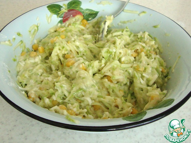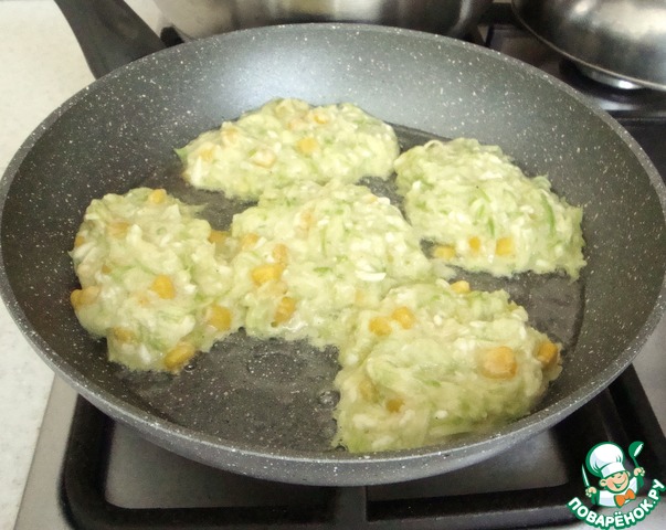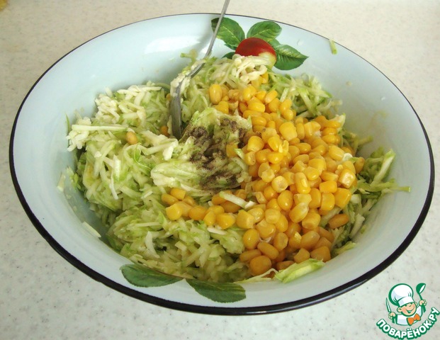 Рецепт «Кабачковые оладьи с кукурузой»: