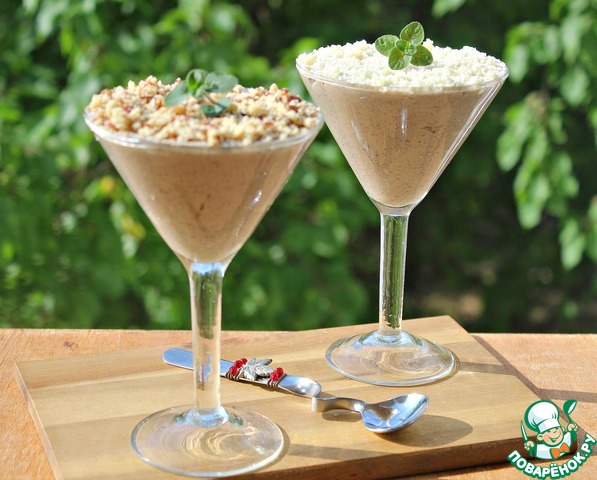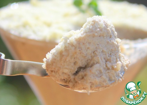Я подавала в двух бокалах - часть паштета посыпала грецким орехом, другую часть тертым пармезаном.