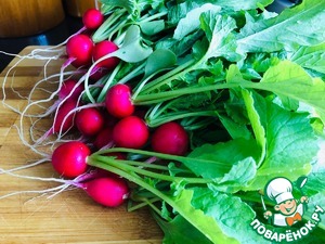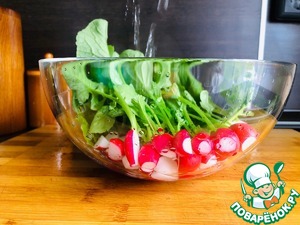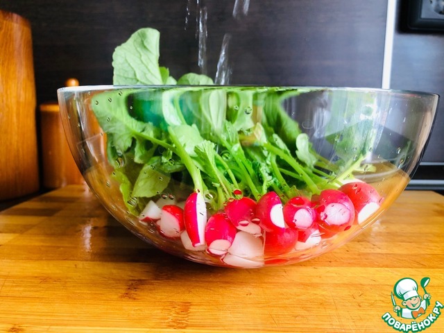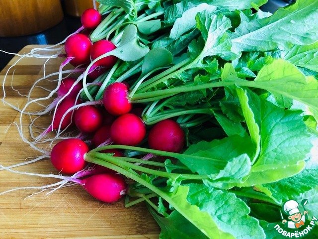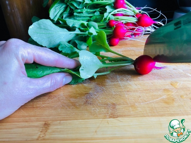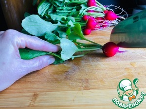1. Молодой редис вместе с ботвой хорошо промываем.