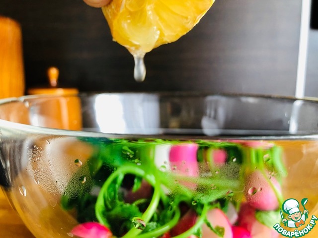5. Как только слили воду с редиса поливаем его лимонным соком