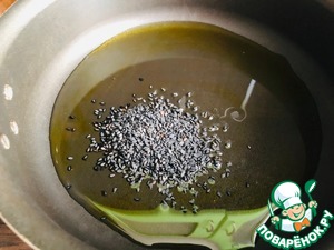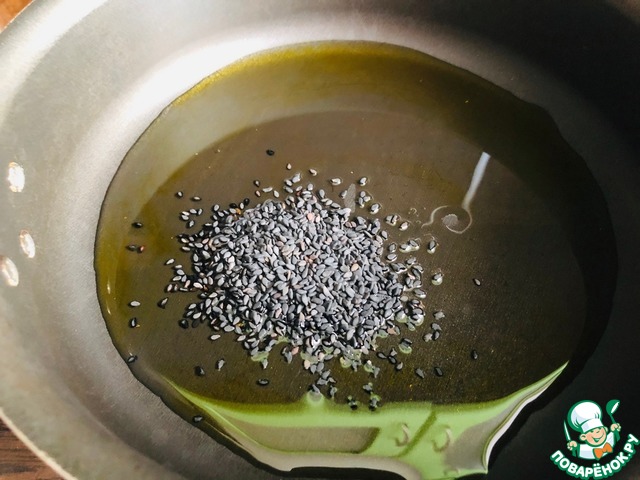 7. В сковороду добавляем растительное масло и кунжут. Обжариваем.
