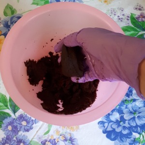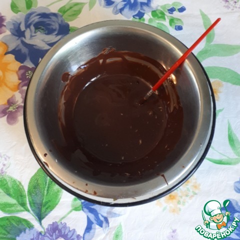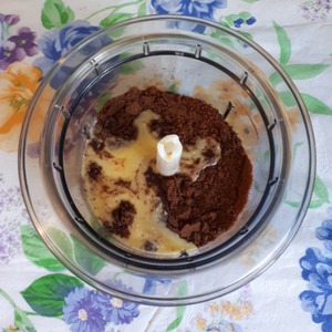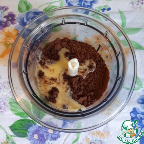 Сливочное масло растопить, остудить и влить в крошку.20 гр шоколада растопить и также добавить к печенью.