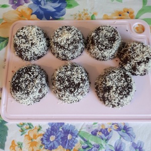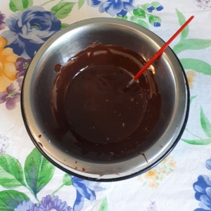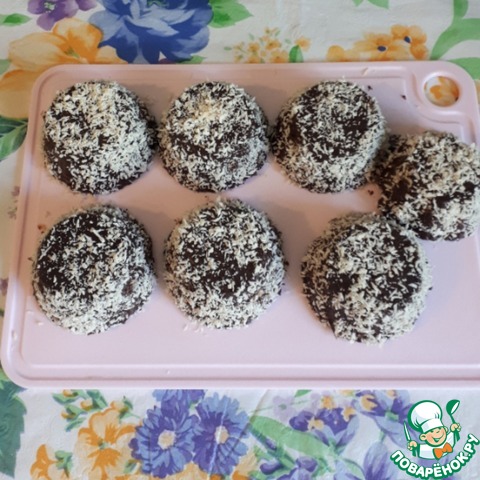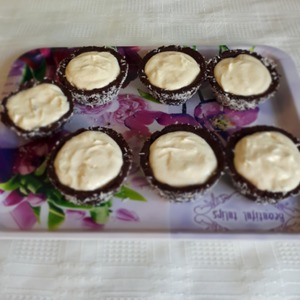 Перевернуть корзинки и с помощью кисточки намазать шоколадом и посыпать кокосовой стружкой, поставить в холодильник застывать.