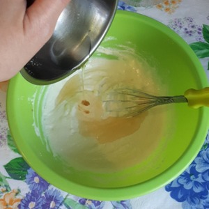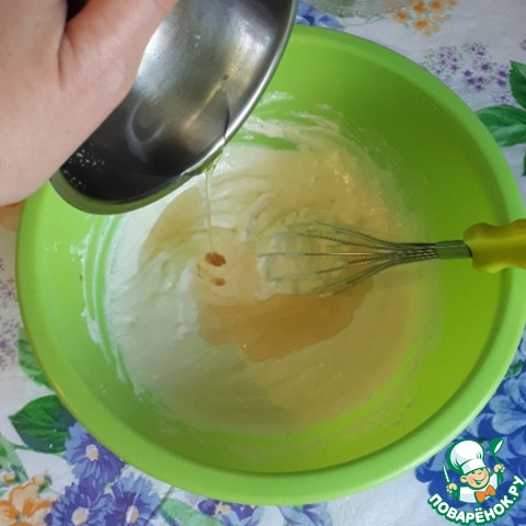 Желатин предварительно замочить в 25 мл воды на 20 минут., затем нагреть до растворения и добавить к массе, перемешать.