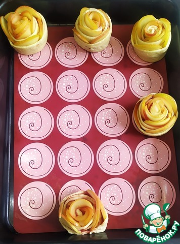 Заворачиваем край теста на яблоки и сворачиваем в розочку.