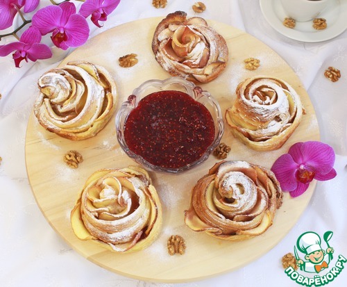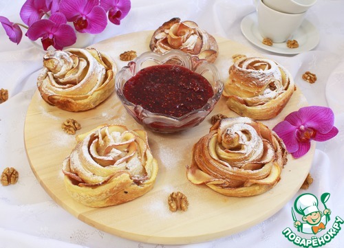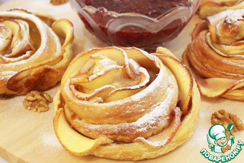 Булочки из слоёного теста могут быть не только очень вкусными, но и невероятно красивыми. Булочки яблочные "Большие розы" именно такие! Готовятся они очень просто, а съедаются очень быстро!