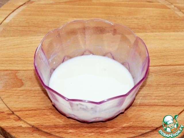 2. Затем, разогрела молоко (200-250 мл) и высыпала рисовую муку, дала ей минуты 2-3 настояться.
