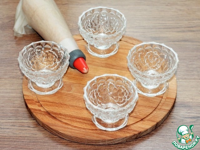 8. После приготовления десерта, я охладила его на столе, а затем переложила в пакетик с насадкой.