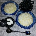 1. Готовила этот десерт впервые. За неимением миндального порошка и рисовой муки, я решила попробовать приготовить по-своему. Перемолола в кофемолке по отдельности: хлопья кокоса (за одно уж), рис и миндаль. Орехи предварительно обжарила на сухой сковороде.