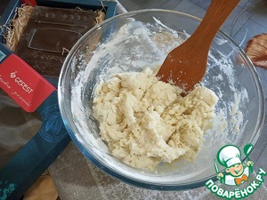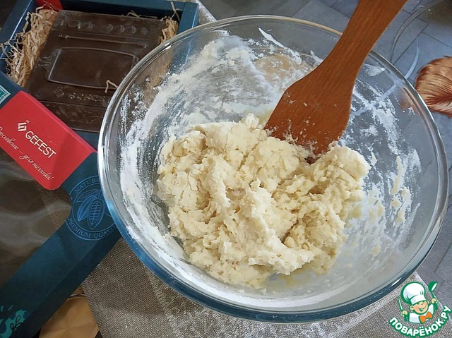 Когда масса остынет, замешиваем однородное тесто. Прикрыть салфеткой и оставить минут на 15.