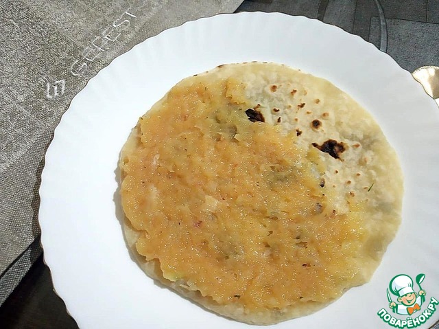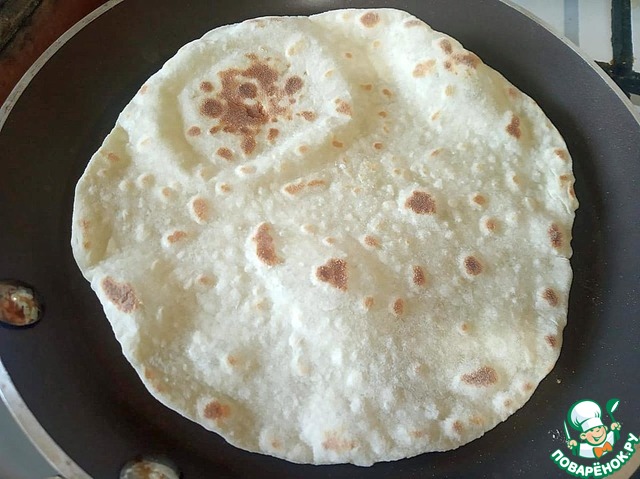 Раскатываем кусочек теста по диаметру нашей сковороды. Выпекаем лаваши на сухой сковороде до румяности с обеих сторон.