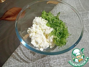 В мягкий сыр добавляем огурец, натёртый на мелкой тёрке, чуть солим и тщательно перемешиваем.