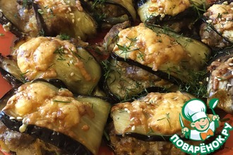 И с баклажанами, разрезав каждый на 2 части. Крышкой для 2-й части будет служить круглый низ баклажана.