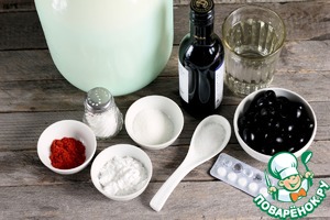 Подготовить необходимые ингредиенты по списку. Молоко (в нашем случае коровье) должно быть обязательно деревенское/фермерское цельное. На фото видно, что в используемом мною молоке есть отстой сливок мл 500. Чтобы это показать, специально взято суточное молоко. В случае необходимости красное вино можно заменить соком вишневым или красным виноградным.