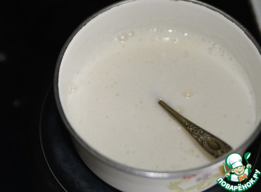 К раствору желатина, после его растворения, добавляем молоко, перемешиваем.