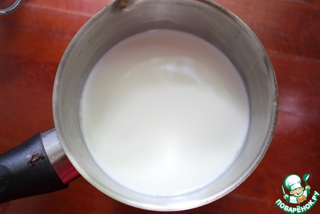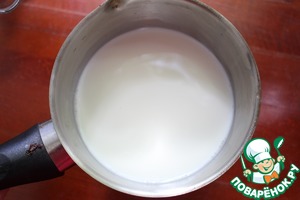 В кастрюлю помещаем кокосовое молоко, сахар и ванильный сахар. Ставим на средний огонь.