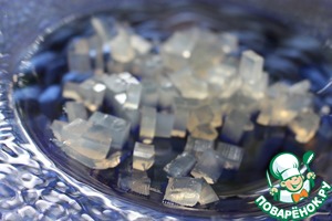 В это время делаем солевые призмы. Смешиваем воду, соль и агар в кастрюле, доводим до кипения и кипятим 1-2 минуты.