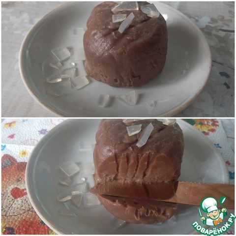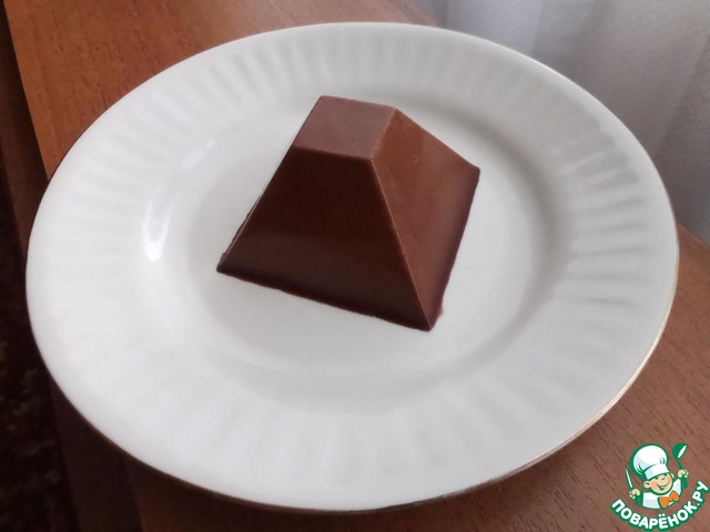 ... процеживая через ситечко (чтобы не было комочков), добавляем к молоку. Также всыпаем агар-агар и добавляем поломанный на кусочки шоколад, тщательно перемешиваем. Доводим смесь до кипения и кипятим 1-2 минуты, постоянно помешивая. Переливаем в форму, даем остыть при комнатной температуре, затем помещаем в холодильник где-то на 1 час.