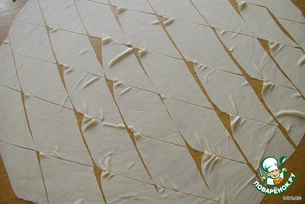 • Из муки, яйца и воды замесить гладкое, не прилипающее к рукам тесто. Раскатать тесто очень тонко. Раскатанное тесто разрезать на ромбики и переложить ромбики на дощатую поверхность для высушивания.